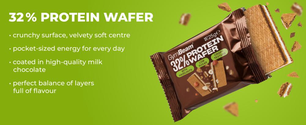 32% Protein Wafer is a deliciously layered experience, made from carefully selected ingredients. The experience is literally deliciously layered. Under the milk chocolate coating are three crispy wafer layers, alternating with delicious milk and chocolate-hazelnut filling with a hint of cocoa. This combination creates a perfect harmony that even the biggest sweet tooths can't resist.