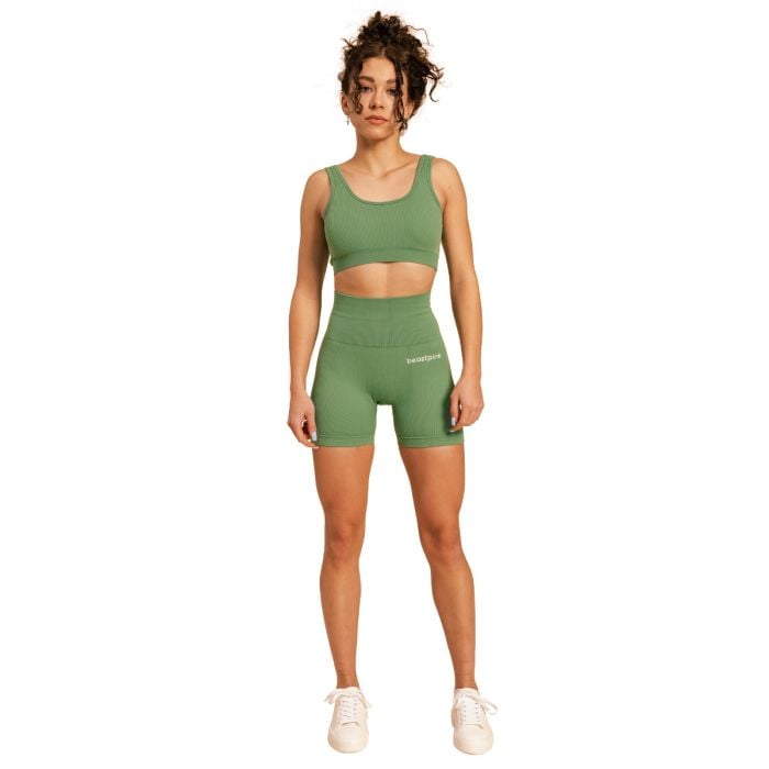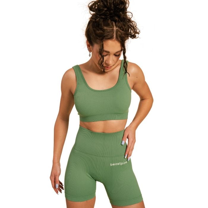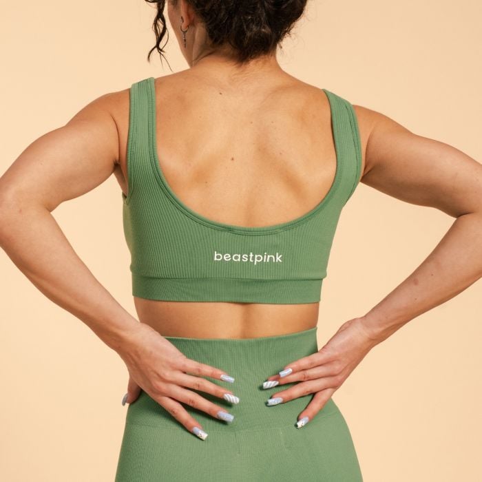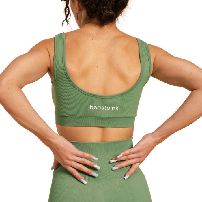 In addition to the perfect material of the bra, you'll also appreciate its fit. It's tailored to perfectly hug your curves so you can focus on your workout. We should also mention its timeless design. It impresses with its trendy ribbed pattern and open back, which give it a unique look. In addition, it is decorated with a BeastPink logo on the back.