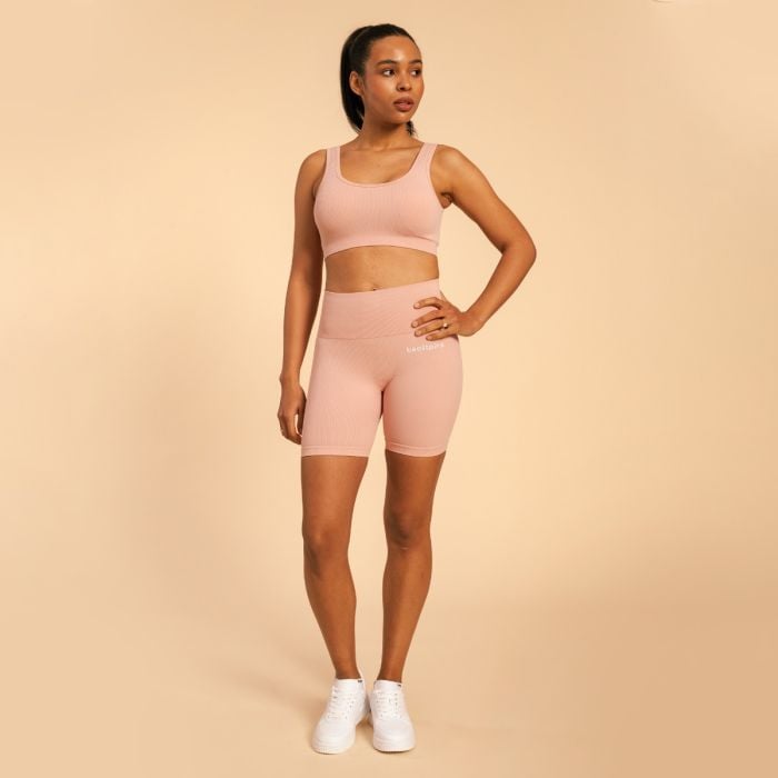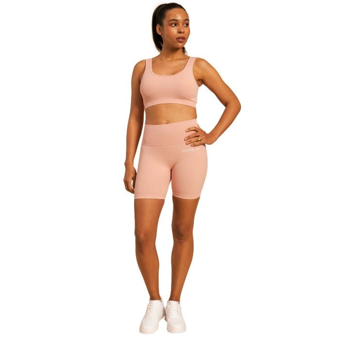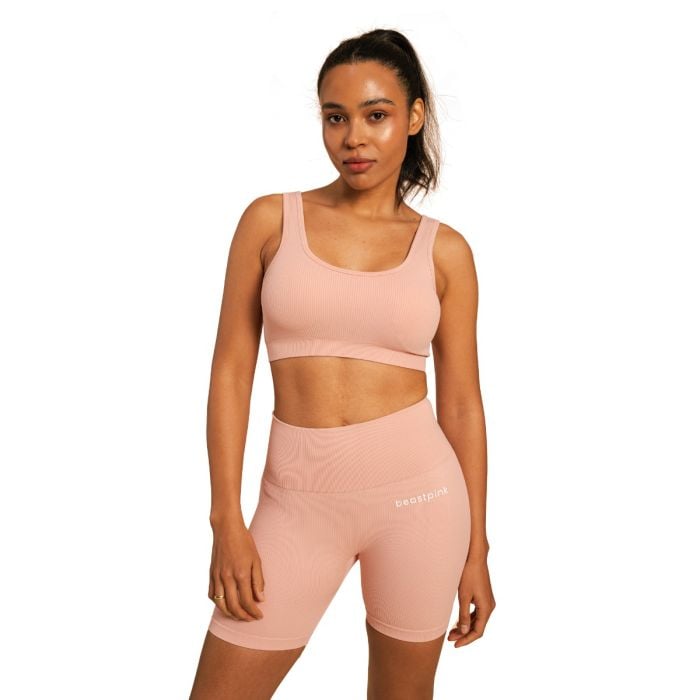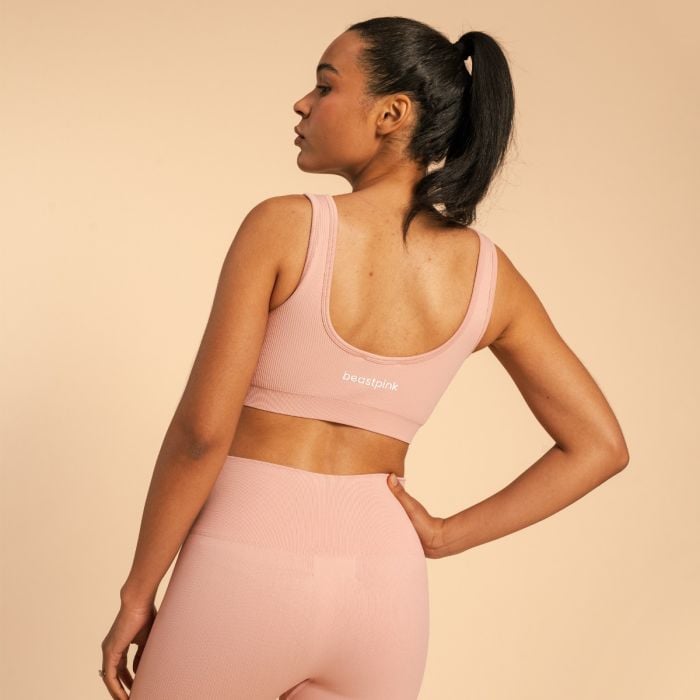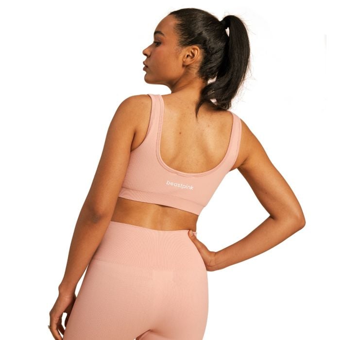 In addition to the perfect material of the bra, you'll also appreciate its fit. It's tailored to perfectly hug your curves so you can focus on your workout. We should also mention its timeless design. It impresses with its trendy ribbed pattern and open back, which give it a unique look. In addition, it is decorated with a BeastPink logo on the back.