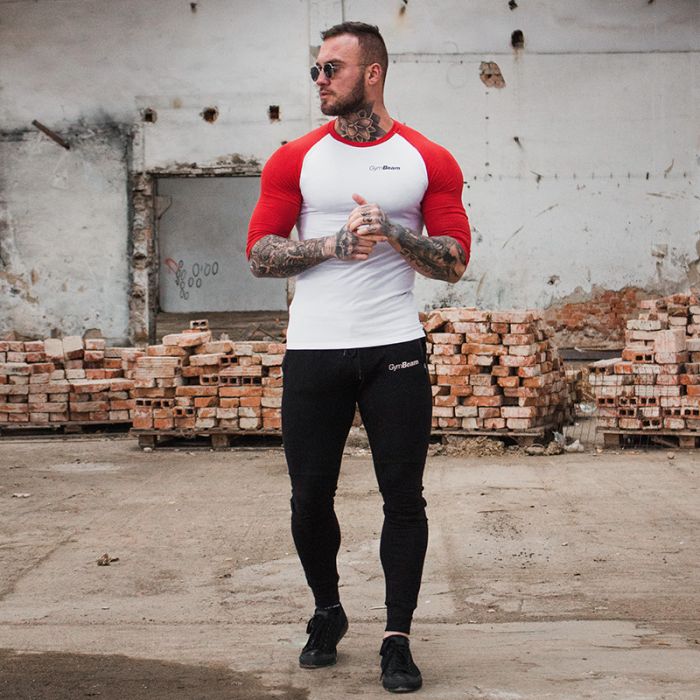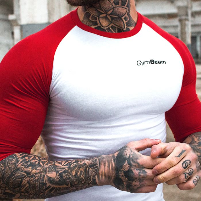 Men's T-shirt Fitted Sleeve White Red - GymBeam | GymBeam.com Skip to main content