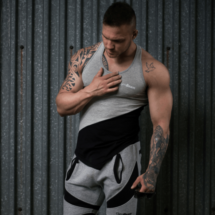 The Men’s Undershirt Flexin Grey - GymBeam is designed to let your worked-out figure stand out. It has a modern cut and stylish design that will catch your eye instantly. It is made of absorbent and airy fabric, which is popular for exercise and casual wearing.