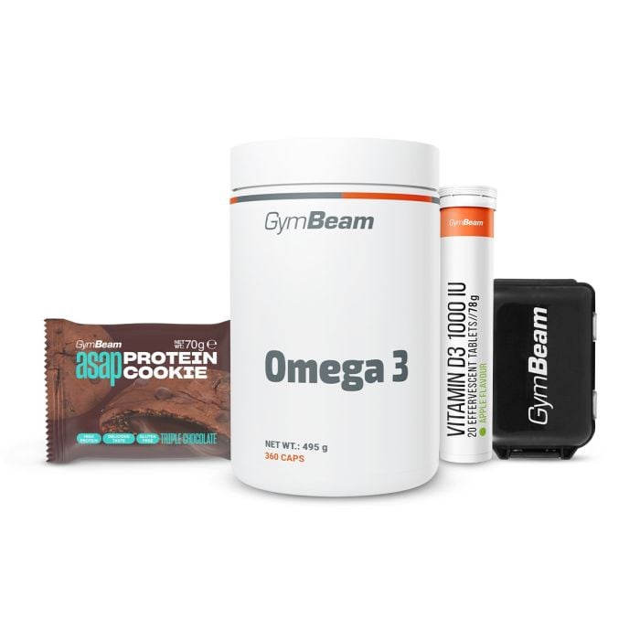 - 360-capsule package + protein cookie, Vitamin D in the form of effervescent tablets, and a practical pillbox for tablets and capsules