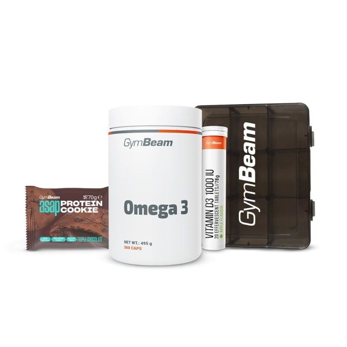 - 360-capsule package + protein cookie, Vitamin D in the form of effervescent tablets, and a practical pillbox for tablets and capsules