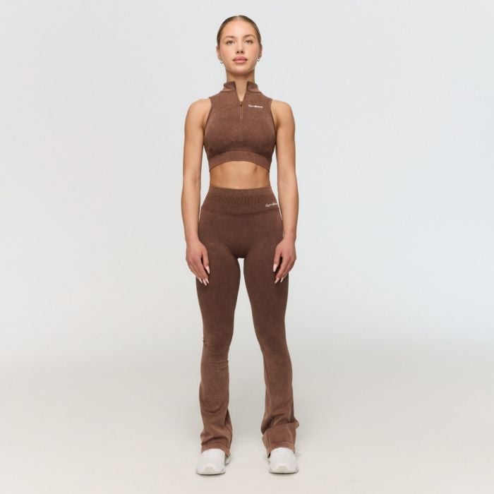 These functional leggings with a washed effect feature a push-up and scrunch butt design, which perfectly shapes your glutes. Together with a snug fit and a ribbed high waist, they beautifully shape the figure and accentuate your curves. From the knees down, the push-up leggings gradually widen into the popular flare cut. However, they maintain a minimalist look and are easily combined with other sports pieces. Put on these trendy flared leggings and enjoy a feeling of confidence and comfort during every workout.