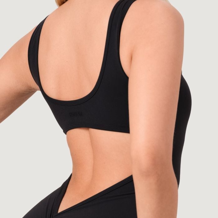 Furthermore, you will certainly appreciate the practical built-in bra with removable padding and the bold open back, which ensures great breathability. This fitness jumpsuit is designed without zips or pockets for an absolutely smooth and uninterrupted silhouette that flatters the female figure. You will also appreciate the anti-slip finish in the waistband area, which keeps the garment firmly in place whether you are doing squats or lunges. Put it on and show the world that you are ready to push your limits with maximum grace and style.