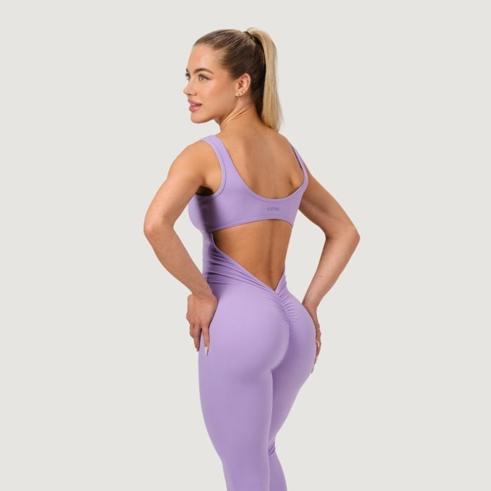 Furthermore, you will certainly appreciate the practical built-in bra with removable padding and the bold open back, which ensures great breathability. This fitness jumpsuit is designed without zips or pockets for an absolutely smooth and uninterrupted silhouette that flatters the female figure. You will also appreciate the anti-slip finish in the waistband area, which keeps the garment firmly in place whether you are doing squats or lunges. Put it on and show the world that you are ready to push your limits with maximum grace and style.