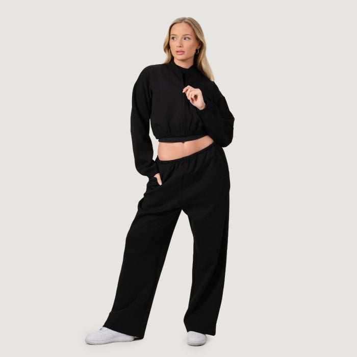 This stylish bomber sweatshirt features a short cropped cut and an oversized fit, giving it a trendy and relaxed look. Elastic cuffs on the sleeves and bottom hem further enhance its style while ensuring it fits the figure perfectly. The sweatshirt is designed without a hood or pockets, which further underlines its clean and minimalist design. Complete your outfit with this sporty cropped sweatshirt and show the world your passion for an active lifestyle.