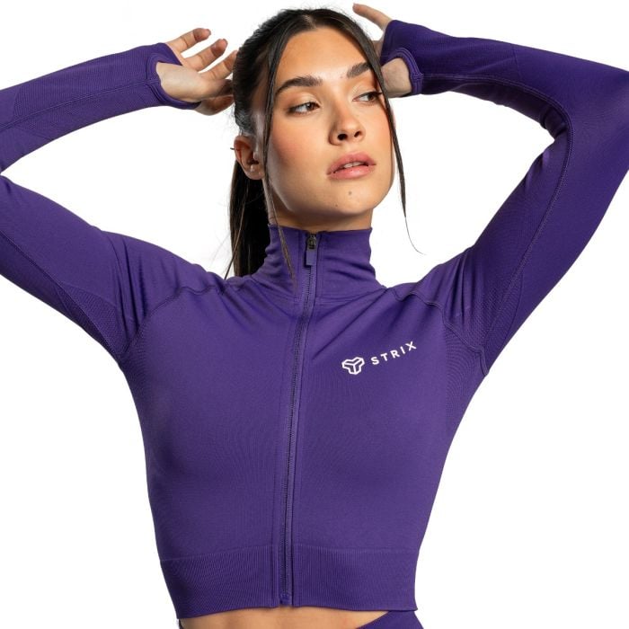 Women's Cropped Seamless Top with a zipper is a unique sporty piece that will fit perfectly into your wardrobe. It's made from a combination of nylon and elastane, so it fits the figure perfectly and wicks away sweat reliably. Plus, it features mesh panels for better breathability to minimize perspiration. This makes it suitable for even the most intense workouts.