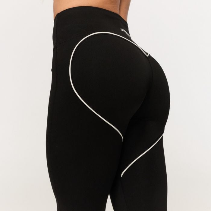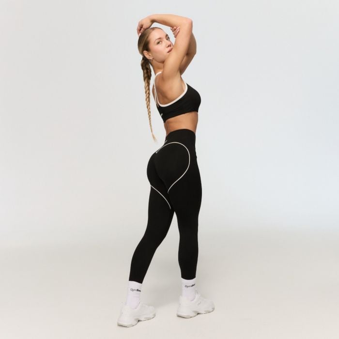 This sports essential features a long cut that perfectly adapts to your figure. High waist ensures the leggings stay securely in place and won’t slip even during deep squats. A seamless front seam design without pockets ensures maximum comfort without any uncomfortable digging or chafing. The standout feature is the large and contrasting heart-shaped hem on the back, formed by thin white stripes. This detail optically shapes the back and perfectly highlights your natural curves.