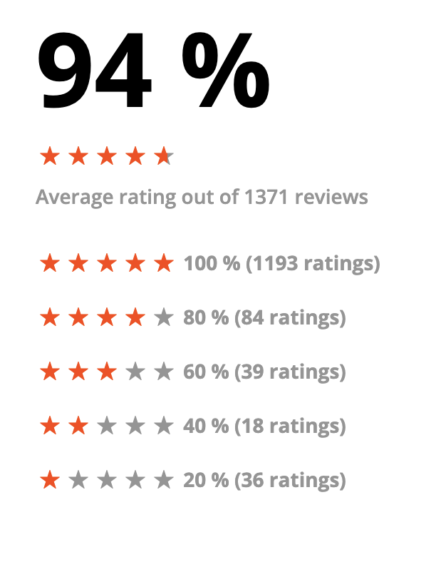 This percentage represents the average rating of the product's quality obtained from all verified reviews, i.e. from customers who purchased the given product in our e-shop through their user account.