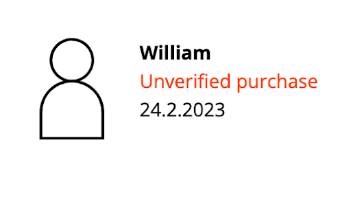 A review labelled as "Unverified purchase" does not necessarily originate from a customer who actually bought one of our products. ‘Unverified purchase’ means we cannot guarantee the authenticity of this review, as its author either wasn’t logged into their account, or was logged in, but has not purchased the product in question via our e-shop.
